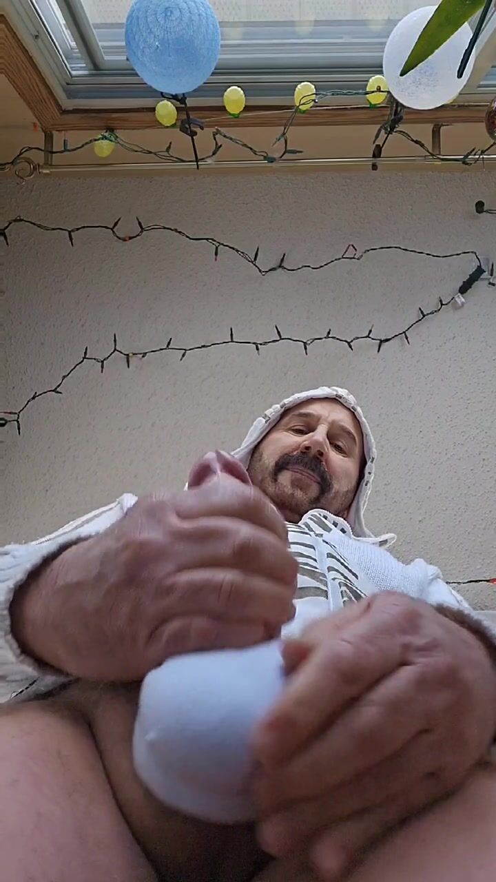 White compression sock over my cock and balls