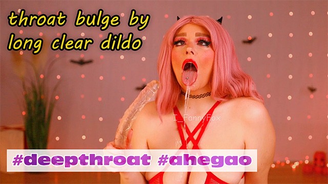 Throat bulge by long clear double headed dildo