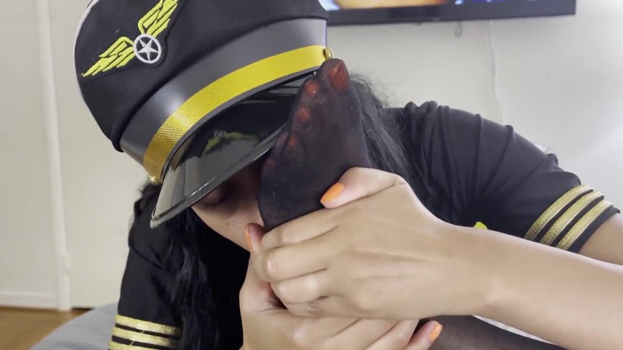 Flight Attendant Worships Her Stinky Pantyhose Feet